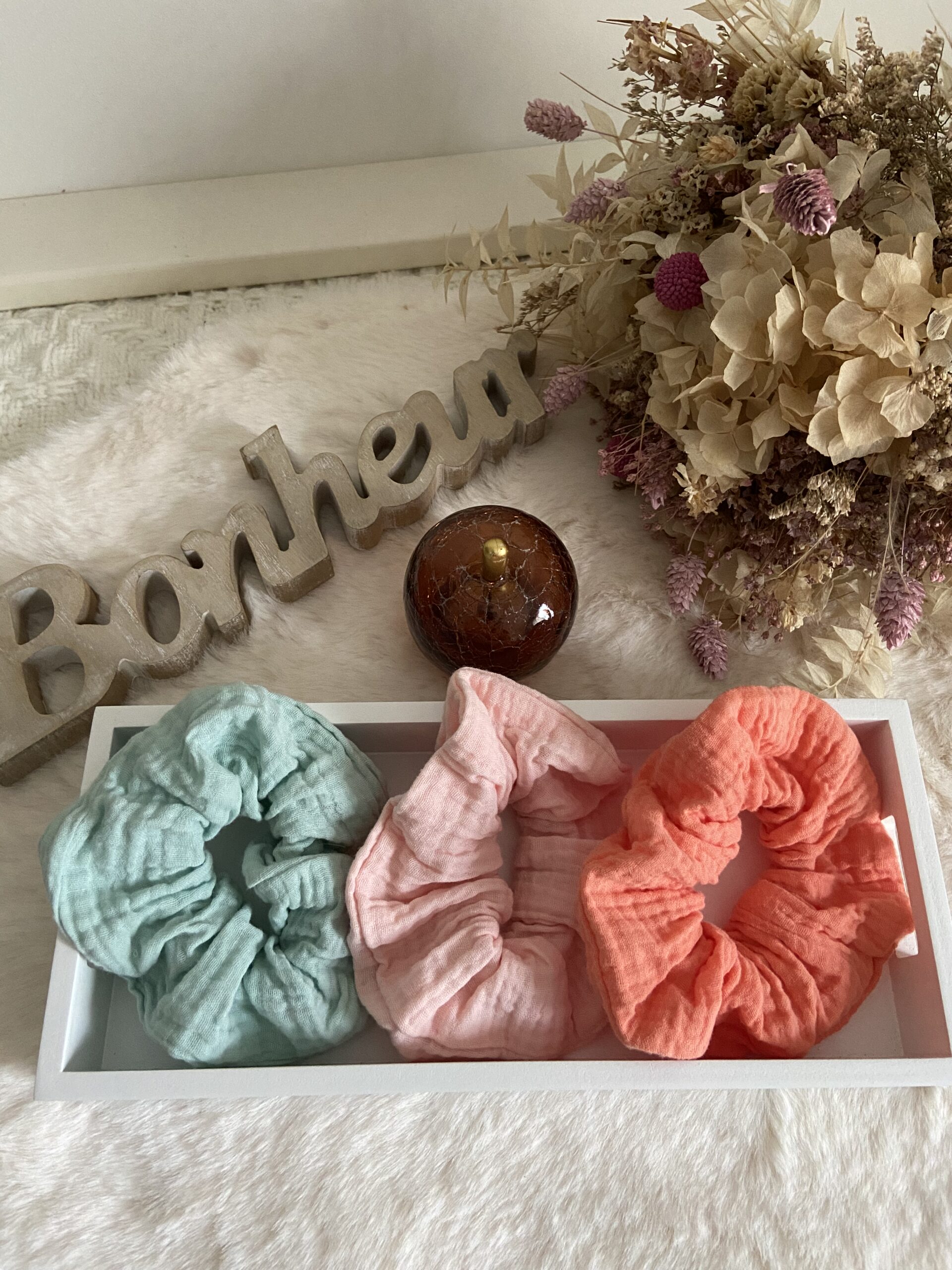 Pourquoi se contenter d’un chouchou ordinaire quand tu peux avoir un accessoire 100% unique, créé selon tes goûts et tes envies ? Grâce à notre projet de sur-mesure, tu as la possibilité de personnaliser chaque détail de ton chouchou :